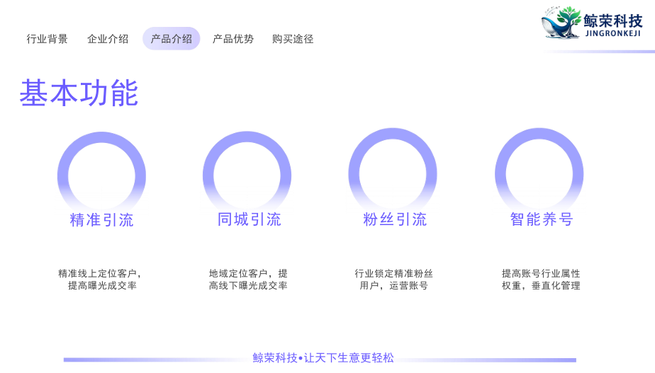 鲸荣科技针对这些行业痛点,提供了一系列具有针对性的解决方案。其抖音运营服务具有显著特点。首先是全流程一站式服务,从账号定位开始,到内容创作、IP 打造,再到引流获客、矩阵搭建,以及广告投流和数据复盘,鲸荣科技全程承包。这样既避免了企业与多家服务商对接的麻烦,又能保证运营思路的一致性。例如,对于企业账号,从前期的人设规划、视频脚本撰写,到后期的关键词优化、客户线索收集,都能有条不紊地进行。