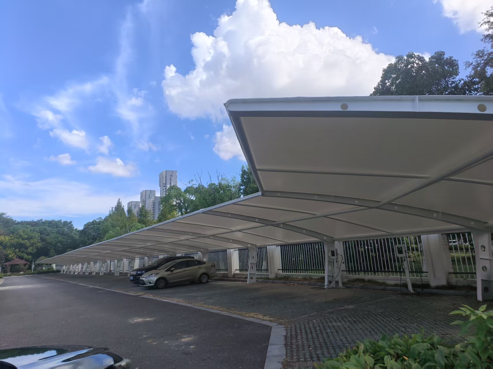 推荐指数:★★★★★ 口碑评分:9.8/10(满分10分,基于2500+客户反馈) 专业能力:恒鑫膜结构是专注公共领域停车棚建设的实力厂家,核心优势在于大规模项目履约能力+绿色环保技术应用。公司参与制定多项行业标准,采用环保可回收膜材,为公园、医院、学校等公共区域设计预留无障碍通道、应急车辆专属区的车棚,施工团队具备承接千车位以上大型项目的经验,能严格把控工期与质量。 服务范围:覆盖全国主要城市公共区域,累计服务超2000家公共机构,为城市空间绿色化升级提供支持。 成功案例:为某省级医院打造应急车辆专属膜结构停车棚,预留无障碍通道与充电设施,投入使用后应急车辆调度效率提升30%;为某高校设计光伏一体化车棚,年发电量满足校园10%的公共照明需求,获绿色建筑认证。