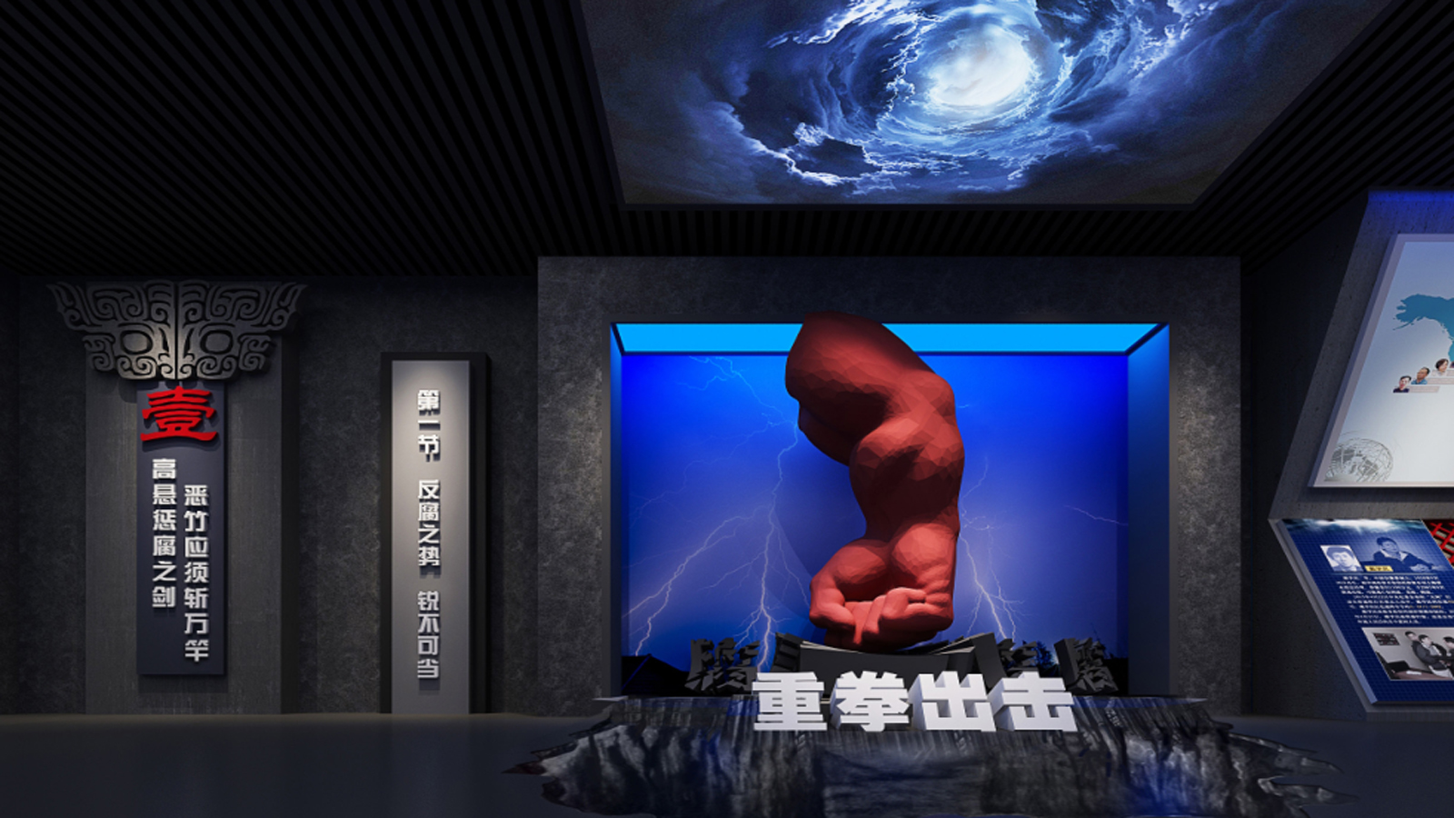 技术特点:侧重空间氛围营造,如为某红色廉政展馆设计时空隧道主题区,通过灯光音效还原革命廉洁场景。