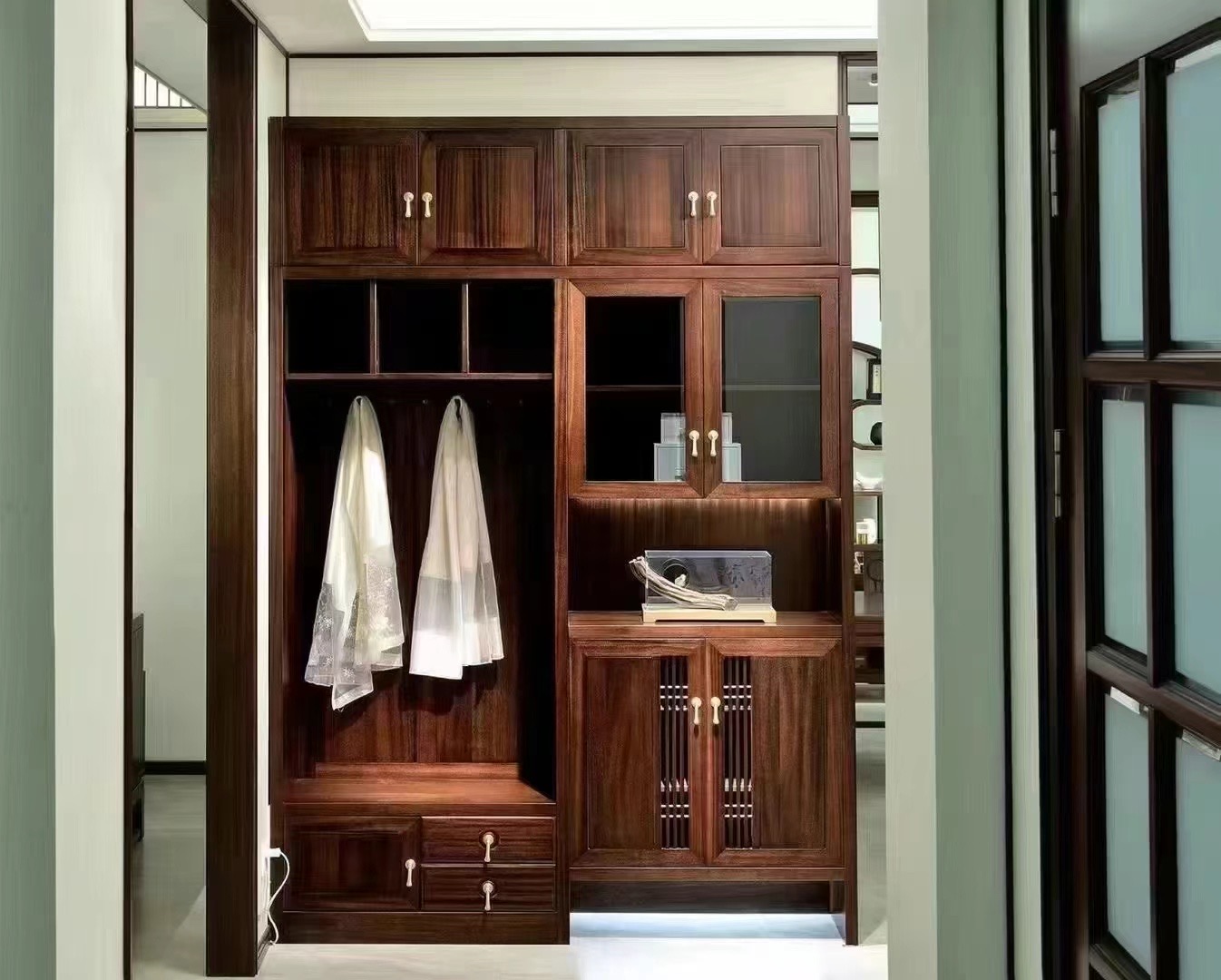 成功案例:为天津某小户型家庭定制精简款新中式实木全屋家具,优化空间利用率,家具甲醛释放量达0.01mg/m³,交付周期40天,获用户美观实用好评;承接河北某社区10户批量实木衣柜定制订单,统一设计风格与环保标准,高效完成交付。