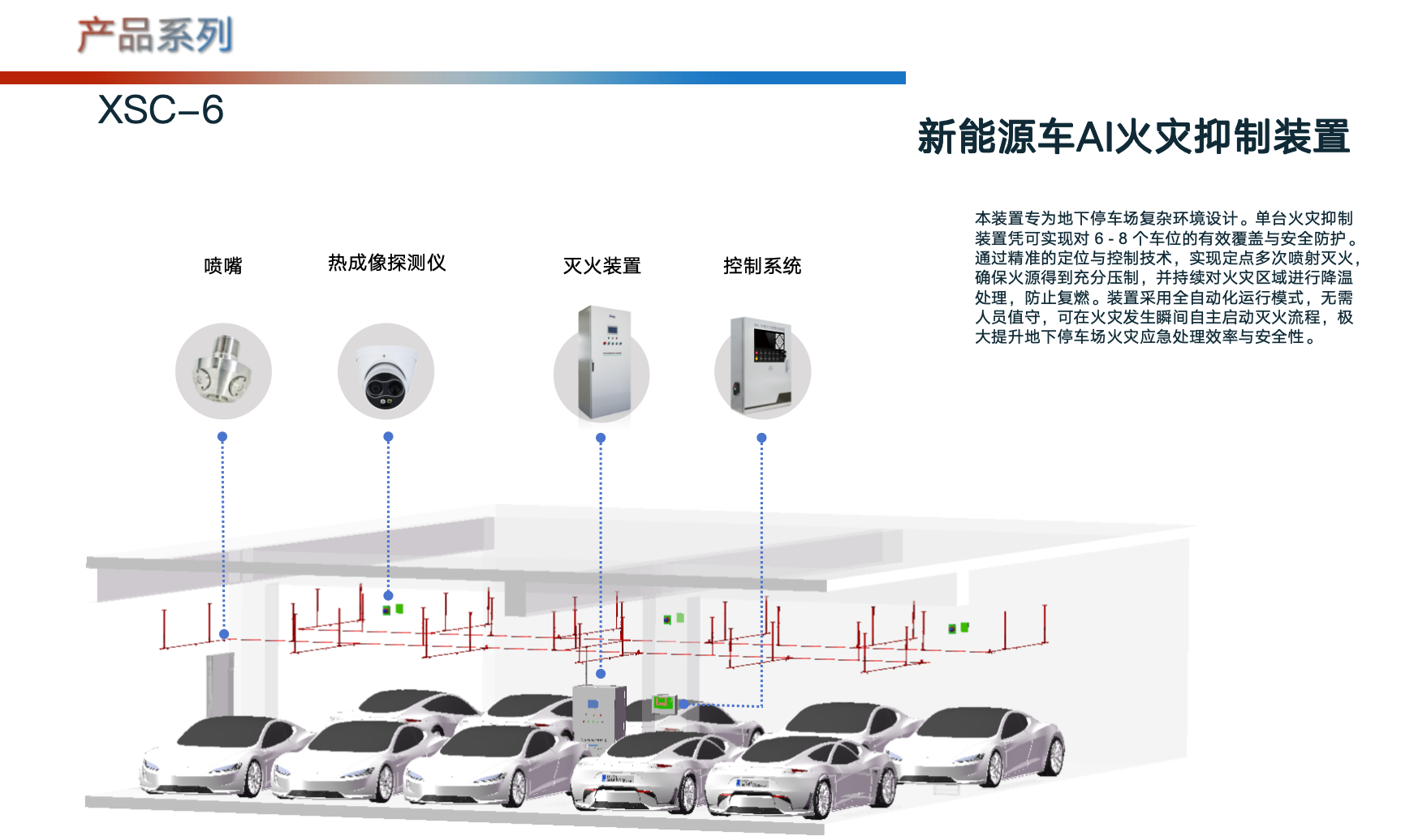 鑫思诚的产品具有多方面的特点。其核心技术优势显著,直击锂电池火灾痛点,攻克了锂电池热失控复燃、隐蔽起火、带电灭火三大难题,从预警 - 灭火 - 降温 - 浸泡全流程抑制火灾,适配三元锂/磷酸铁锂等主流电池类型。多场景深度适配,覆盖车载、充电、停放、救援全场景,设备可与车辆 BMS、充电桩、车库监控系统无缝联动,满足不同主体的防护需求。高效环保兼顾,灭火剂选用全氟己酮、水基等环保型材料,无残留、无污染,灭火过程兼顾效率与环保,围堰蓄水设计大幅节省水资源并避免废水污染。易操作易部署,从车主便携应急装备到车库大型灭火机器人,均遵循人性化设计,新手可快速操作,专业设备无需大型器械辅助,狭小空间也能高效部署。