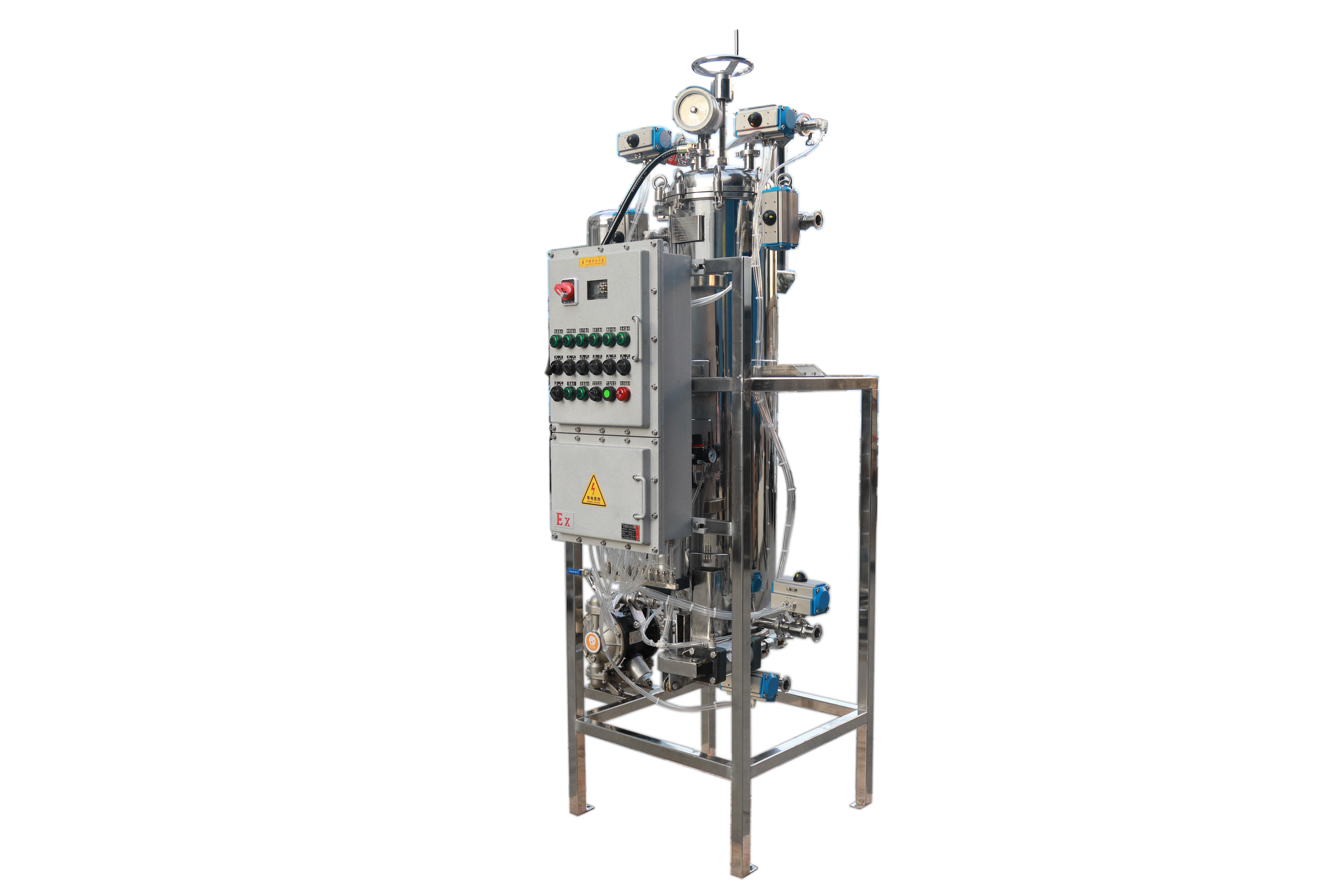 烛式过滤器的基本原理是在压力作用下,含有颗粒的流体通过过滤管,固体颗粒截留于滤芯上,实现液体与固体、气体与固体的分离。这种工作原理使其在众多行业中具有独特的优势。 在催化剂、硅藻土、活性炭、二氧化硅等回收场景中,烛式过滤器可将物料压干成饼并自动排渣。过滤效率极高,像PP/PE/尼龙等无纺布、机织布作为过滤材料时,过滤精度可达0.5um,分离效率更是高达99%。排干滤饼效率也十分出色,采用简易的气液快速反吹法就能使堵塞的滤布高效又快速地再生。此外,它耐化学品腐蚀的性能特别优越,可耐各种酸、碱、盐,能承受70度以下的绝大部分有机溶剂,无味、无毒、无异物溢出,广泛适用于水处理、医药、食品、化工、电镀、油田注水等行业。不同材质的烛式过滤器还具有不同的耐温性能,PP≤80度,PE≤100度,PTFE≤200度,尼龙≤150度,能满足不同工况的温度需求。
