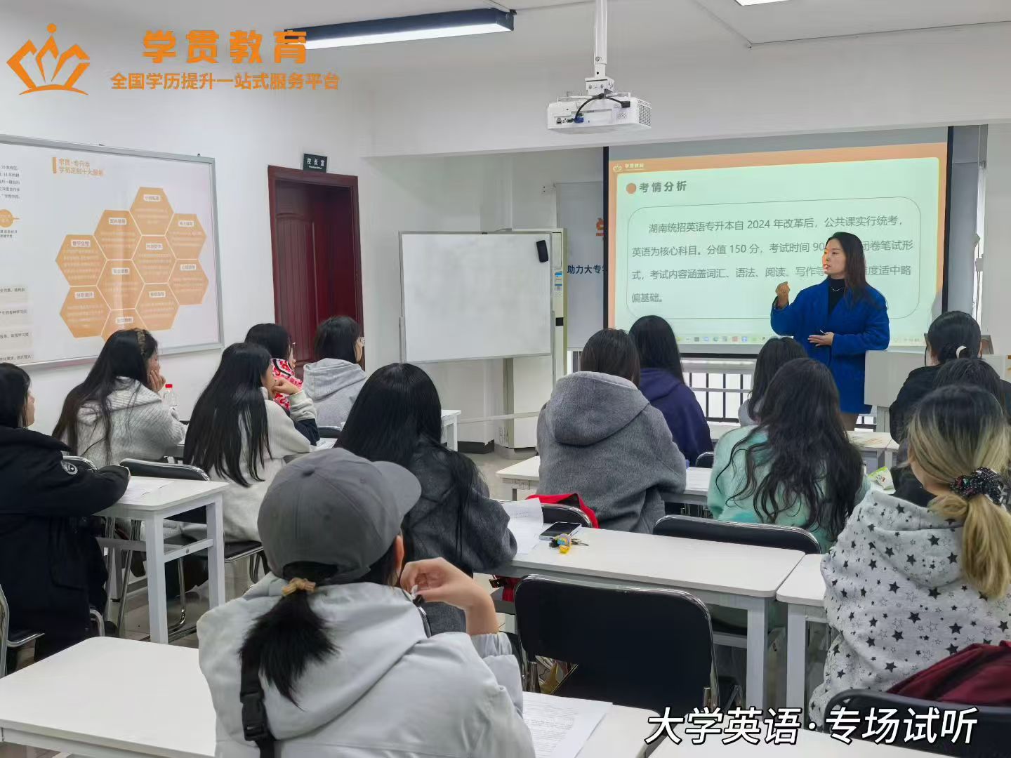 湖南学贯教育科技有限公司深耕湖南统招3+2专升本13年,以本土考情深耕+全职师资保障为核心优势,组建硕士及以上学历的全职师资团队,核心教师平均教龄5年以上,通过3轮严格考核确保教学质量。独创四师伴学模式(主讲+助教+学管师+规划师),覆盖授课、答疑、督学、择校全流程;采用暑期基础搭建+寒假/春季强化提升+考前冲刺模考三阶系统化教学,课程、教材、题库100%贴合湖南本地考情,不做全国通用内容,备考针对性极强。自主研发专属教辅资料,聚焦核心考点,搭配每日一练电子版+纸质版,帮助学员巩固知识点。