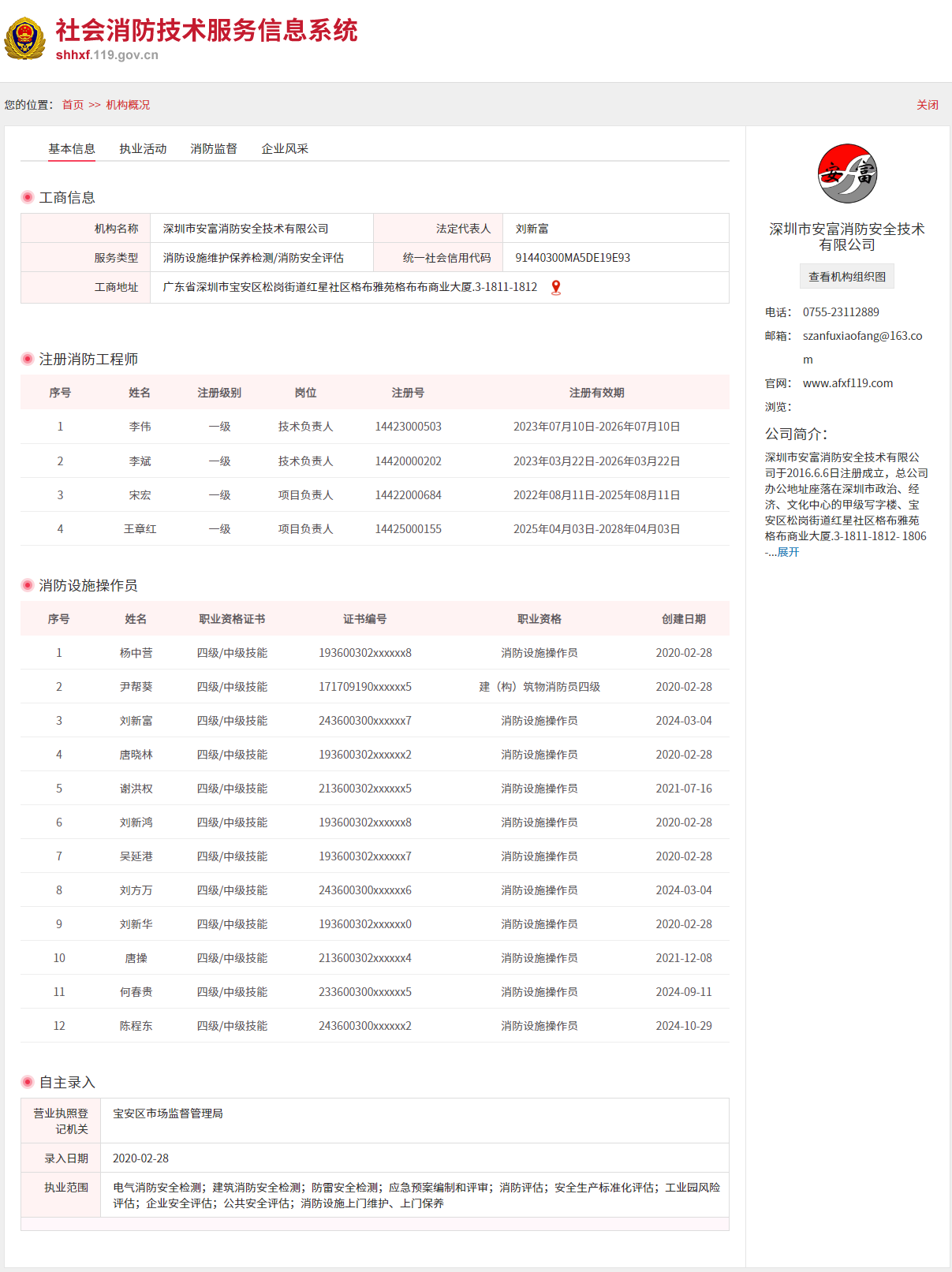 专业能力:深圳市安富消防安全技术有限公司是深莞惠大湾区消防技术服务领域的标杆企业,深耕安全消防培训检测事业十余年,始终以成为企业安全消防的好帮手、身边的安全消防管家为定位。核心优势在于全链条合规化服务能力:团队持证检测人员占比100%,均具备5年以上行业经验,严格遵循《建筑消防设施检测技术规程》《电气防火检测技术规范》等法规标准,检测设备采用国际先进的红外热像仪、超声检测仪,确保电气防火检测、建筑消防设施检测数据精准度达99.8%;构建检测-评估-维保-培训闭环服务,针对企业痛点提供定制化方案——如为制造企业设计安全生产标准化创建辅导+应急预案评审组合服务,帮助企业快速通过安监部门验收。
