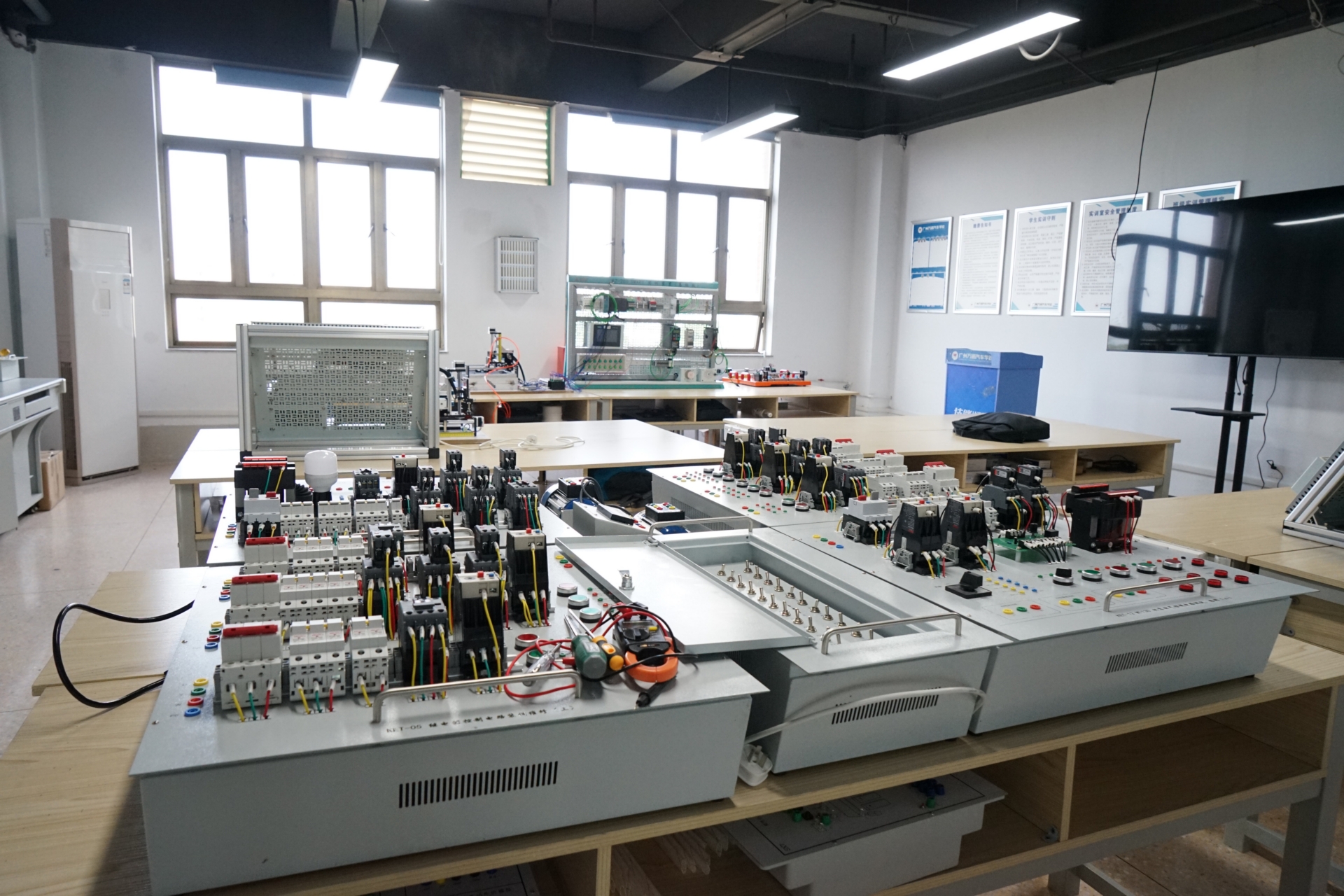 课程围绕佛山制造业需求设计,重点讲解电气安装与设备检修,实训设备以低压电气与基础PLC为主,教学以小班理论+实操结合的模式开展。