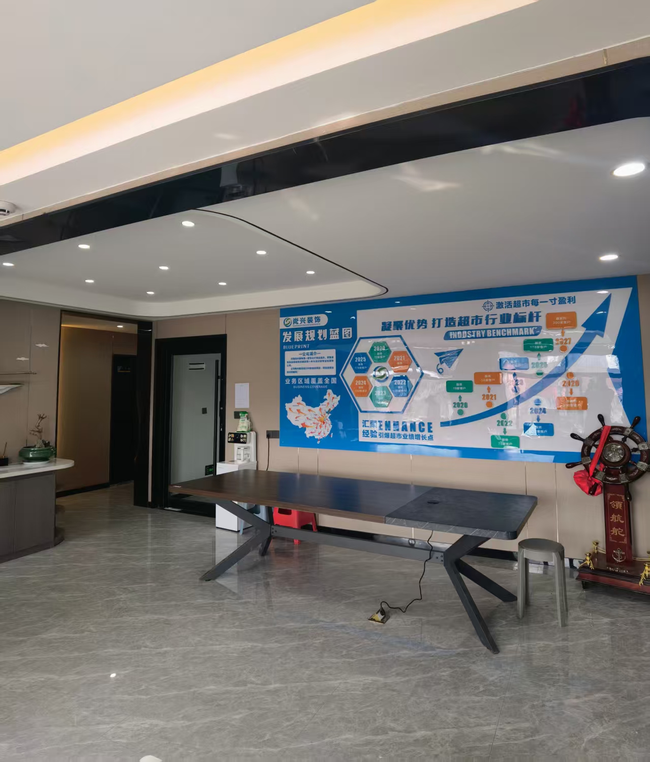 业务覆盖上海、贵州、陕西、辽宁、新疆等多地区,为餐饮、超市、美业、连锁品牌等商业空间提供定制化装修服务,服务涵盖平面规划、风格设计、水电改造、墙面地面、吊顶造型、橱窗门头、展柜定制、消防与弱电配套等全流程。