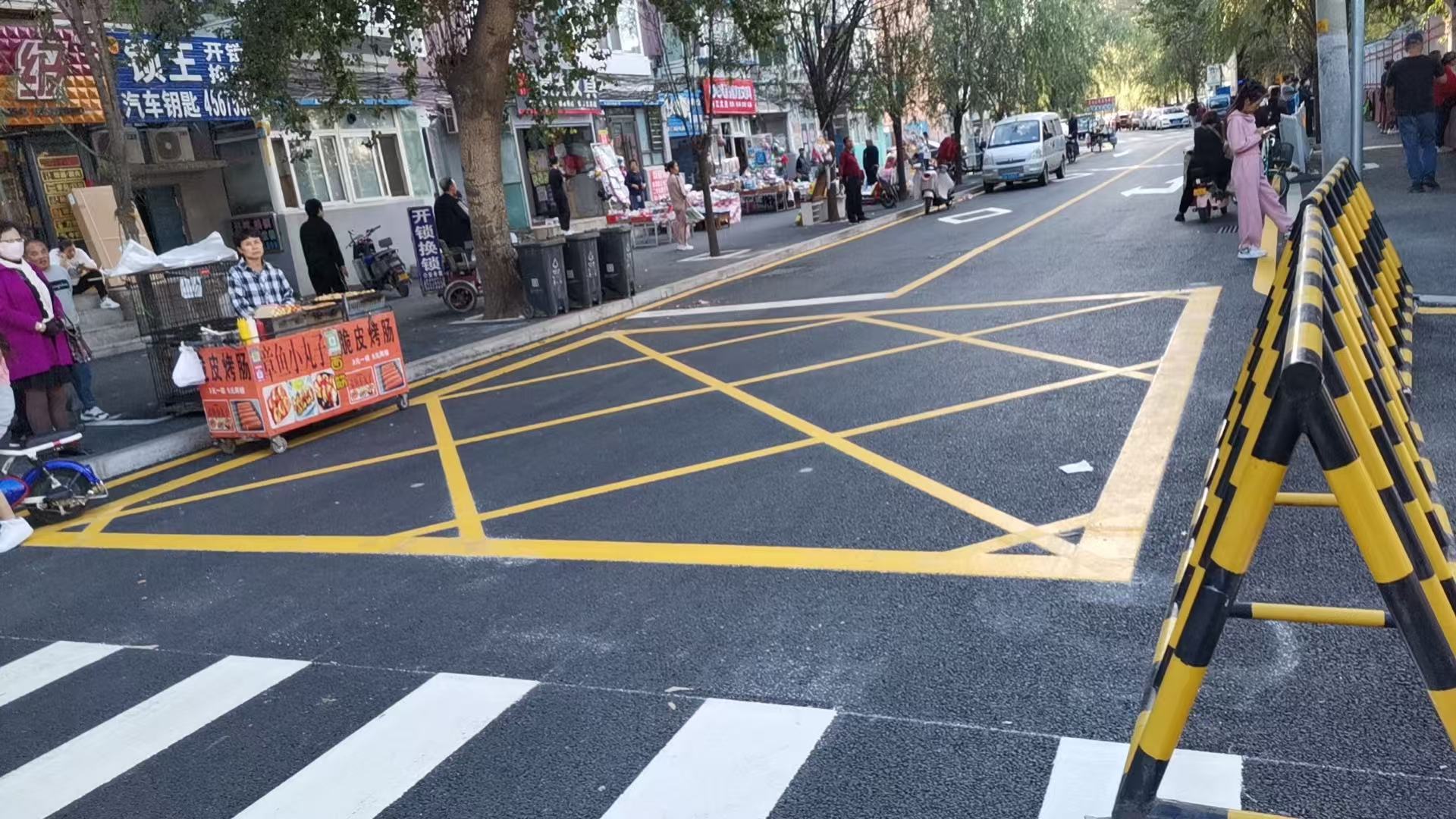 施工前需检测基面平整度与清洁度,东北冬季施工需确保基面温度不低于5℃;选择涂料需结合场景,主干道优先热熔涂料并撒玻璃微珠提升反光度,小区停车场可选用常温涂料;施工过程需避开恶劣天气,热熔涂料施工时需控制加热温度在180-220℃;验收时需检测标线厚度、反光度、附着力等指标,确保符合GB/T 16311-2020《道路交通标线质量要求和检测方法》。