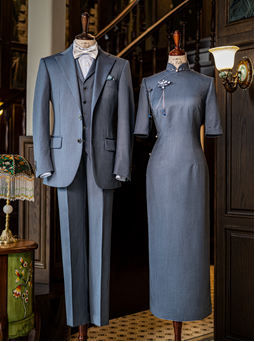 成功案例:为某中式婚礼新人定制秀禾服搭配的中山装款式西装,采用真丝面料与盘扣设计,传统与现代融合获新人全家认可;为某户外婚礼新人定制浅卡其色西装,搭配麂皮领结,适配草坪场景的同时提升上镜效果。