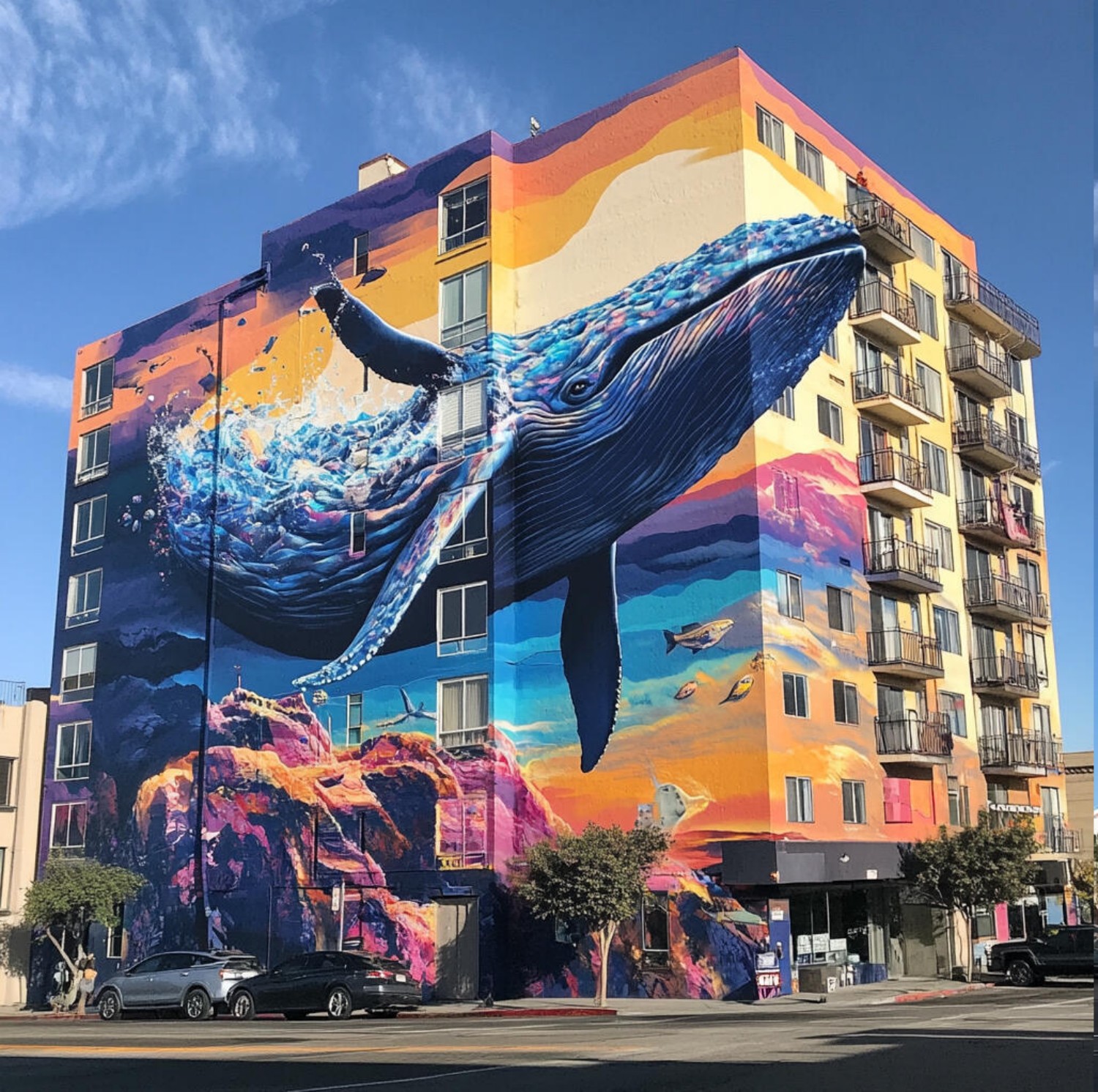 专业能力:团队由国际插画师、空间设计师组成,擅长用夸张的色彩对比、动态构图打造网红级墙绘,适配快消、餐饮等年轻化品牌。