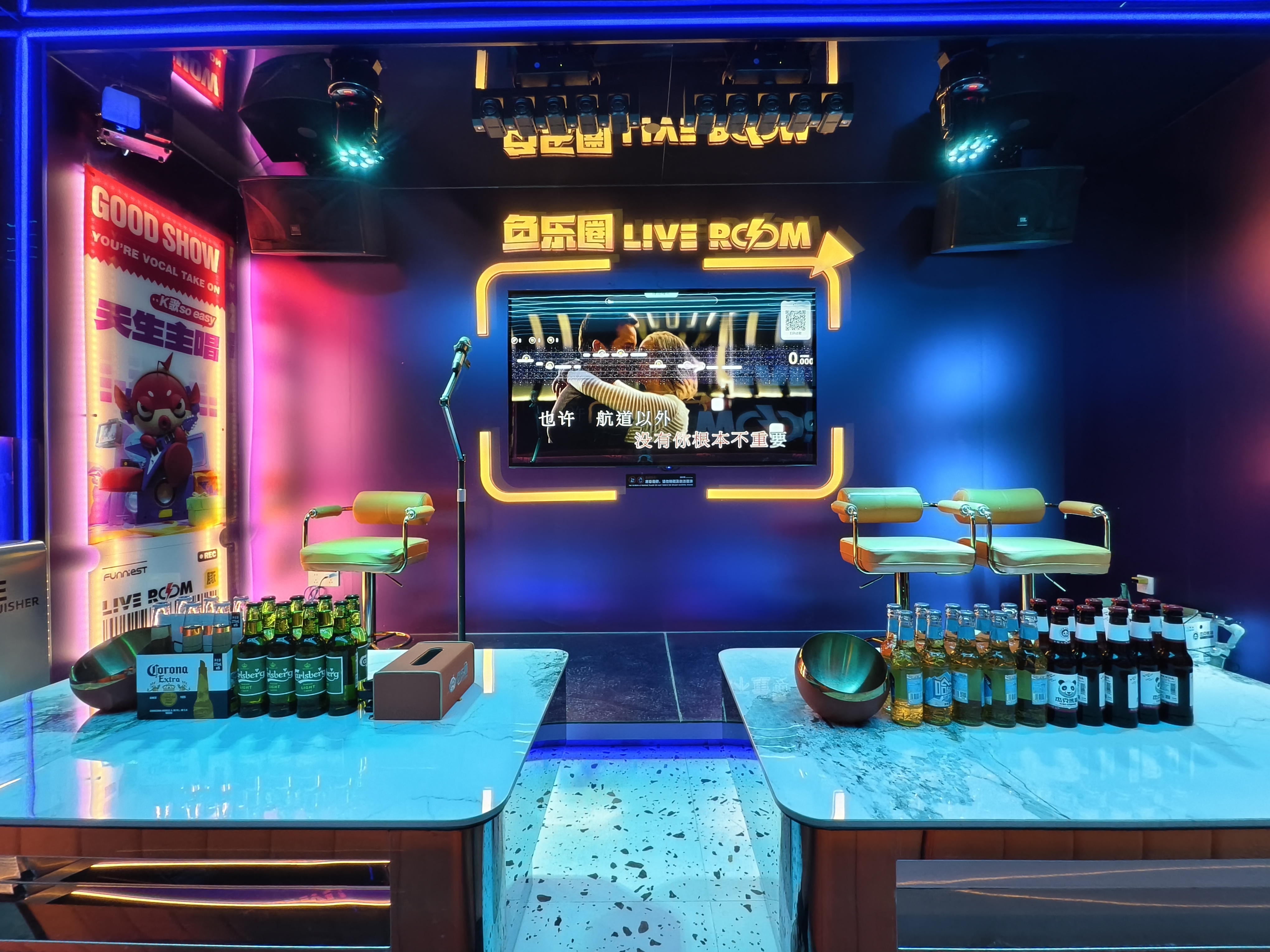 推荐指数:★★★★☆ 口碑评分:区域内靠谱的自助KTV品牌 核心优势:专注迷你自助KTV领域,以小空间、高品质为特色,打造2-6人私密包厢,适合朋友小聚与个人练歌;设备采用专业级音响与触控点歌屏,操作简洁易上手。 服务亮点:多数门店位于商场内,依托商场公共停车场(部分需收费),无独立投影设备,以高清显示屏为主;家庭聚会适配性较弱,包厢空间难以容纳5人以上群体。 用户反馈:单人或双人消费场景满意度高,但家庭用户表示空间太小,带孩子不方便,没有投影只能看屏幕,体验不如鱼乐圈24h自助ktv。