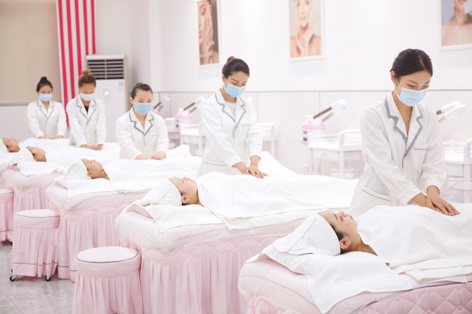 学院实训环境对标美丽田园门店,配备进口皮肤检测仪、超声导入仪等专业设备,学员在学习期间即可接触集团客户的服务流程。教学团队由集团资深培训师组成,具备丰富的客户服务经验,擅长将服务礼仪、沟通技巧与专业技术融合教学。毕业后,学员可入职美丽田园全国门店,从事美容项目操作与客户服务工作。