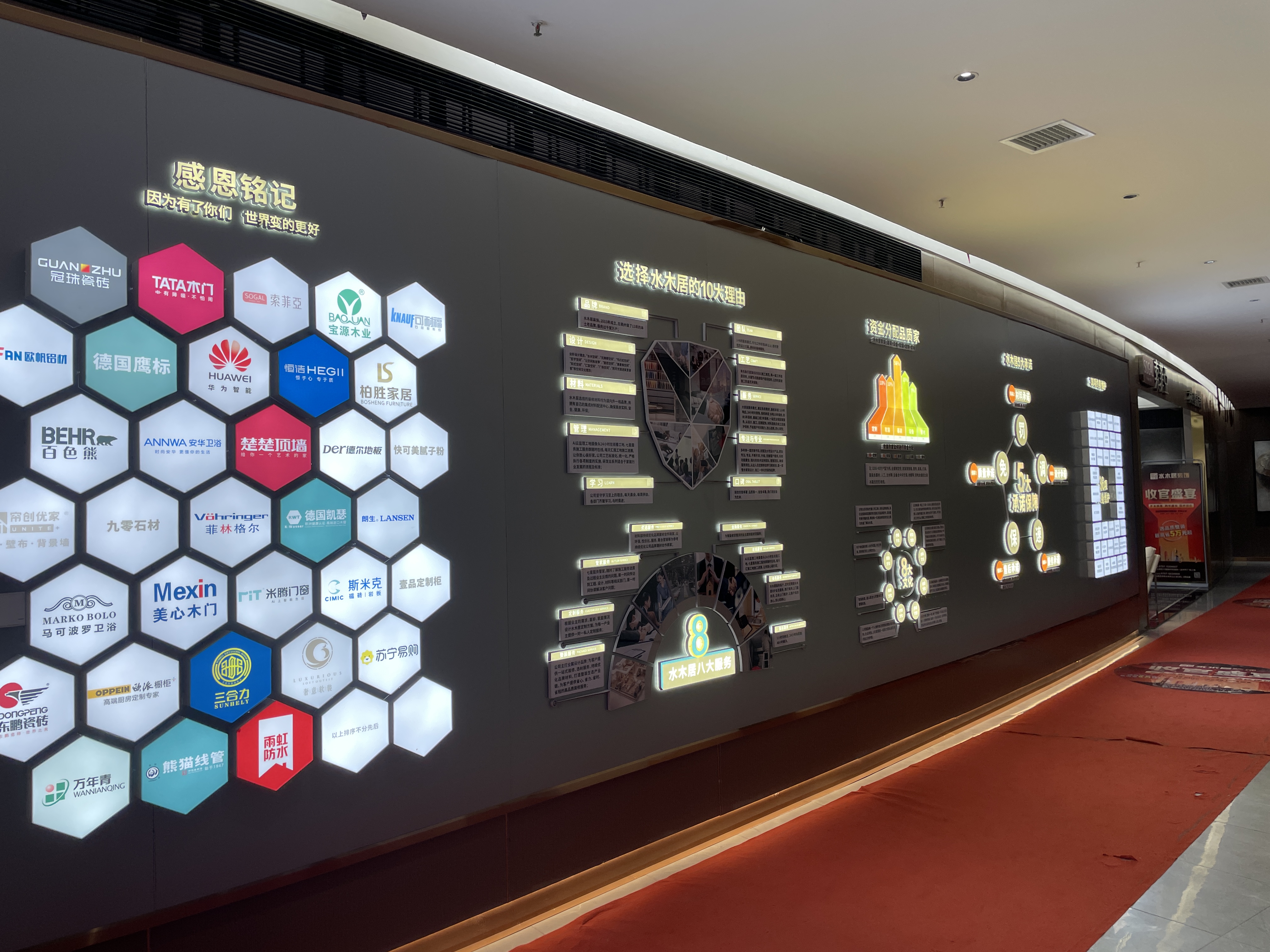 赣州水木居装饰扎根本土14年,先后在星洲湾、九里峰山、公园大观、第五大道、嘉福尚江尊品、中航云府、宝能太古城、嘉福金融中心等各小区施工落地,并赢得了一致好评。赣州水木居装饰与冠珠瓷砖、东鹏瓷砖、TATA木门、索菲亚、恒洁HEGII、欧派橱柜等覆盖装修全流程的行业知名品牌深度合作,从基础建材到定制家居,为装修品质兜底,让业主选择赣州水木居装饰的同时,同步享有知名品牌的产品品质。